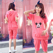 беременна беременности и родам весна лето мода новый корейский короткими рукавами с капюшоном Микки Весна и осень спортивная спортивный костюм специальноеЦена:1150 Руб. -