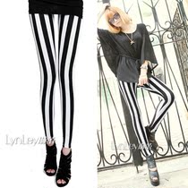 2014 Hot тонкий срез был тонкие узкие черные и белые вертикальные полосы нерегулярные длинные брюки высокие эластичные леггинсы брюкиЦена:920 Руб. -