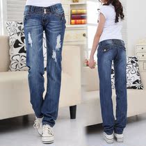 корейской версии новых оригинальных одноместных потертых джинсах дыры женский тонкий небольшой стрейч Прямо свободные большой ярдов женские брюки с низкой талией жира М. приливЦена:1390 Руб. -