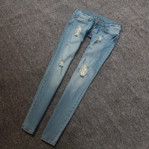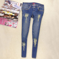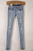 2013 летом новый европейский и американский оригинал одного модные тонкие светлые маленькие джинсы отверстие женские низкой талией прямые брюки с большими ярдовЦена:930 Руб. -