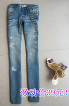 осень 2013 женская один прилив мыть изношенные тонкие стрейч джинсы низкие брюки талии ноги брюки двориков хзЦена:1600 Руб. -