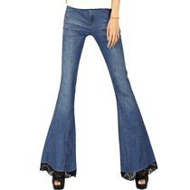 2014 новый кружева большие рога Тонкий был тонкий джинсы женские брюки весна прилив большой ярдов K663Цена:1640 Руб. -