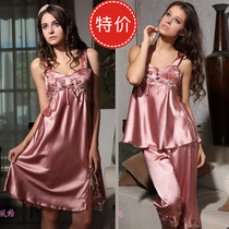 жа летом шелк пижамы кружева ночной рубашке молока шелковые V-образным вырезом ремни спортивный костюмЦена:750 Руб. -