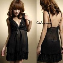 подлинные принцессы плечевые ремни Лето Искушение белье женщин сексуальное нижнее белье черные прозрачные кружева пижамыЦена:740 Руб. -