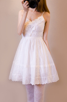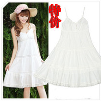 Корейская волна белый V-образным вырезом платья принцессы платье хлопкового кружева юбка жилет платье ремень платье нижнего бельеЦена:1550 Руб. -